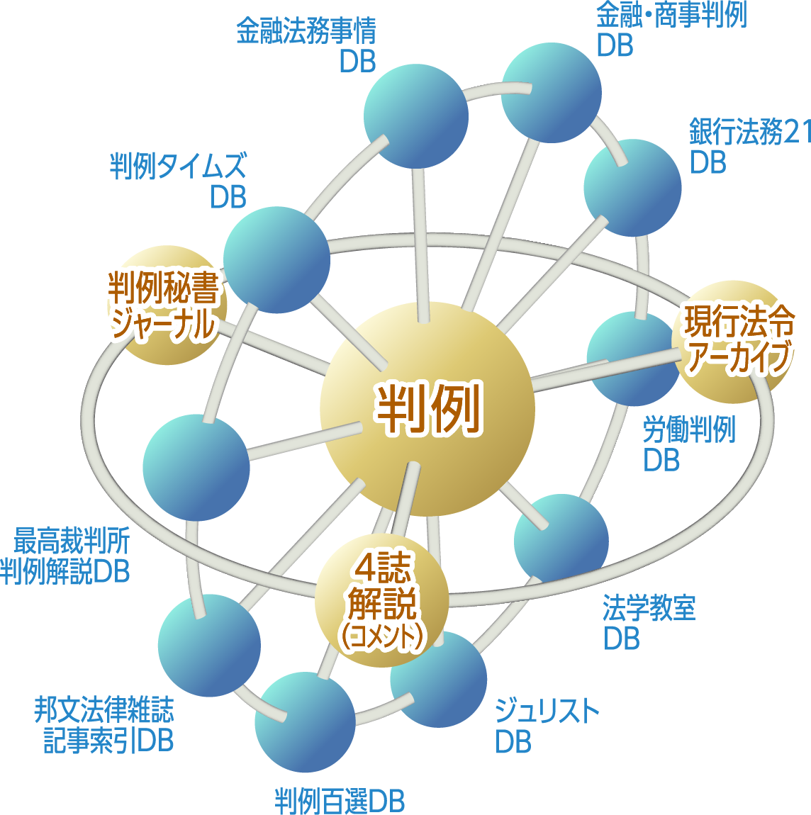 「Hub & Webデータベース構想」とは、判例をHub(中核)として、実務家にとって必要不可欠な関連する論文・評釈をWeb(網状)にリンク。一次情報から二次情報へのスピーディーな連携を実現させました。